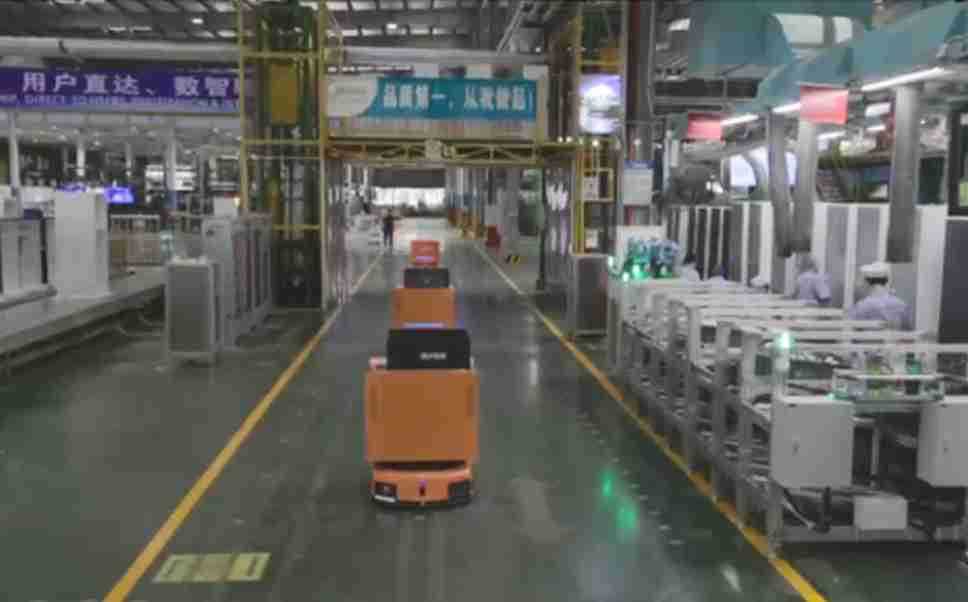 为车载冰箱物流配送打造的智能解决方案,,,,包含产中物流通过潜伏举升AMR搬运至线边,,,产后成品物流智能仓储,,流程包含产中物流智能齐套入库,,,线边安灯叫料AMR智能配送至线边,,,成品入库、、、出库,,,,通过无人堆高车机器人,,智能仓储管理替代人工作业管理,,,实现更高存储、、、更高效率、、、更具柔性化的解决方案。。。