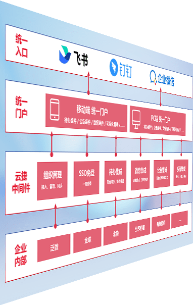 对协作平台提供支持服务,,,,支持企业应用与协作平台对接,,包含组织同步、、、消息集成、、、待办集成等。。。。支持目前主流的协作平台:钉钉、、、、企微和飞书。。。。